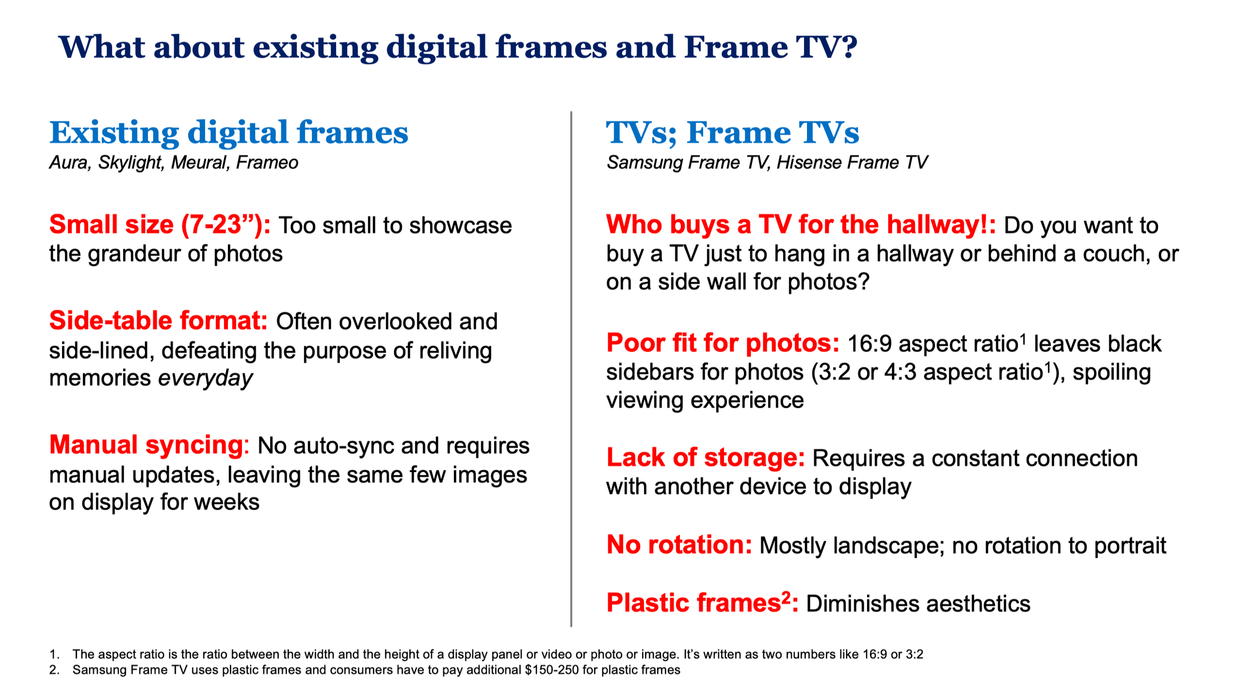 We are NOT another TV or a side-table digital frame. Photo frames belong on your walls — whether it’s behind the couch, in the hallway, or above your bed. Our frames are designed to be a part of your home’s aesthetic, but they won’t replace your TV or take up tabletop space.